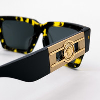 100% NEW AUTHENTIC EYEWEAR WITH FULL PACKAGE Brand: VERSACE Model: VE4459 5428/87 Condition: New with full package Frame color: Black, Yellow Lens color: Gray Frame material: Acetate Size: 54-18-140 mm Made in Italy Item included: authentic eyewear, certificate of authentic, cleaning cloth, case, box.