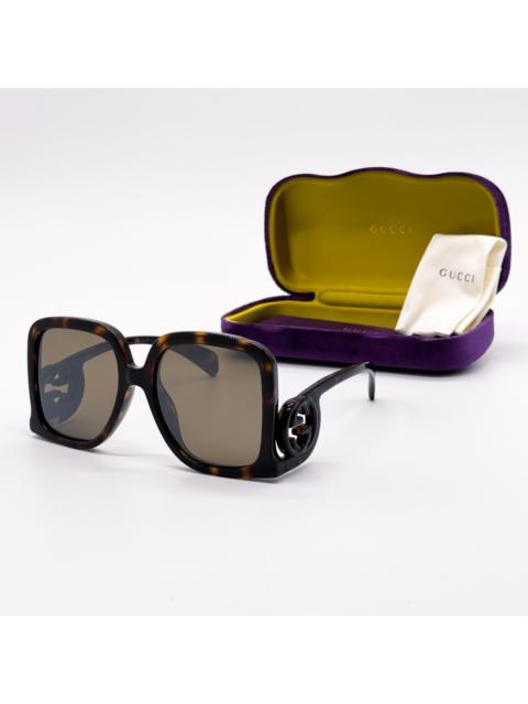 NEW GUCCI GG1326S 007 OVERSIZED DARK HAVANA BROWN MIRROR WOM