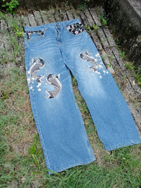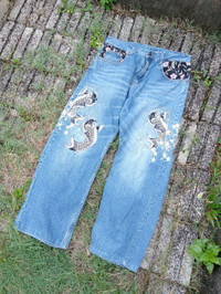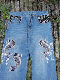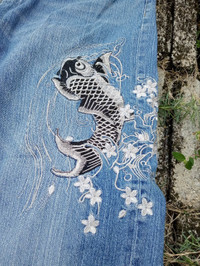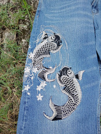 Vintage - π₯STEALπ₯Vtg Japanese Embroidery Sugoi Fish Sukajan Jeans