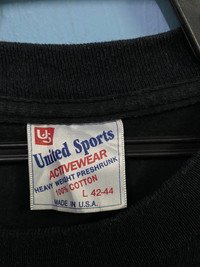 PLEASE READ & REFER TO MANUAL DESCRIPTION BEFORE BUY!! Manual Measurement as per below : Size on tag : L Armpit to armpit = 21.5 Inches Length = 30 Inches Tag United Sports Made In USA Good Condition 9.3/10 No defect All measurements are taken with the garment flat on the ground Others detail please refer to picture attached Postage: Using DHL Express Only. During this pandemic Covid 19, at my country only available express shipping to ship worldwide. Using express shipping more safe and item will be arrived faster within 3-7 days working day to your location. Please left your phone number after you made a Purchased. It is being use to fill in at DHL form, and it is mandatory. ATTENTION : Please pay close attention to measurements provided. Do not rely on tag size as pre-worn items may have been altered, stretched or shrunk & vintage sizes do not directly translate the modern sizes. The best way to ensure a correct fit is to compare our measurements with the measurements of a similar item that you know fits you well. And please take note,** i will not accept return if u cant fit it. As i already give my manual measurement. Please enlarge the photos for clearer image. Thank You For your Attention.