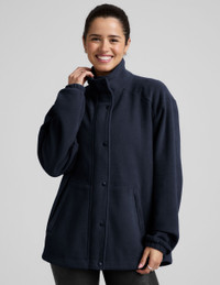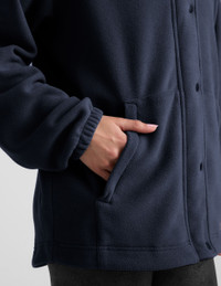 For the outdoors and every day, your adventure buddy has arrived. With a relaxed fit and long length with elastic binding, you'll stay cozy even if the forecast is chilly. - Full front zip and snap closure - Front pockets with hidden zippers - High low full coverage hem - Relaxed fit - Classic length Fabric: Activate Fleece A responsive fleece that always provides the right amount of cozy warmth. 100% Polyester Recycled Yarns Easy Care