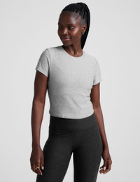 Meet our 90's inspired, fitted Baby Tee that will forever be one of our favorite tops. Made of our ultra-lightweight and supersoft Featherweight Spacedye fabric, with a cropped length and short sleeves. Any season, any mood, any time; throw on this easy cropped top and pair with all your favorite bottoms, from leggings to trousers. - Crew neckline - Fitted - Cropped length - Uniquely created to flatter every shape - Every style we produce is wear-tested on our in-house team to ensure the best fit in every size Fabric: Featherweight Spacedye SHOP ALL The lightweight version of our best-selling Spacedye fabric. Comprised of the same great hand and texture but light enough to wear as a layering piece without the compressive fit. 94% Polyester, 6% Spandex