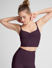 Barre and ballet class just got even cuter thanks to this cropped tank. It has a shirred detail on the sweetheart neckline, supportive built-in bra, and adjustable straps. Pair it with the matching legging to make a complete set for your next studio visit. - Sweetheart neckline - Shirring at center front - Adjustable straps - Self shelf bra - Cropped length - Designed to uniquely flatter every shape - Every style we produce is wear-tested on our in-house team to ensure the best fit in every size Fabric: Spacedye This is our buttery soft performance fabric with a unique texture and exceptionally soft hand. 87% Polyester, 13% Elastane