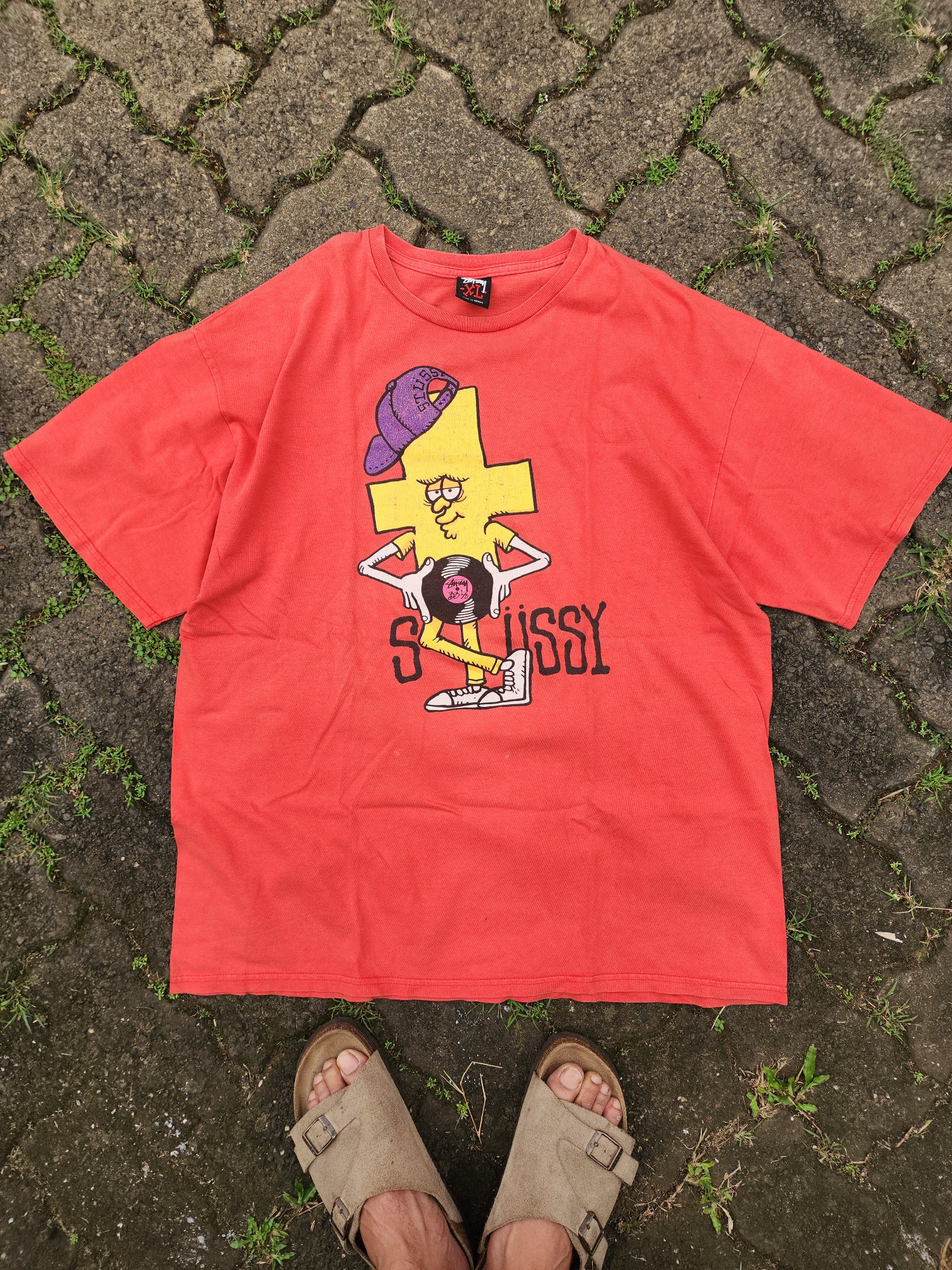 Stussy Character tee XL sized Condition : - Faded - Some stain, need a treatment of stain remover Note : For some more picture details and price, please hit me up