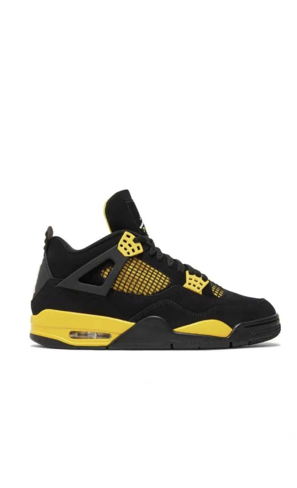 Product Description For the first time in over a decade, the Air Jordan 4 Retro Thunder is returning and is being featured as part of the Jordan Brand Spring/Summer 2023 campaign. Jordan Brand brought back this fan favorite colorway that is constructed using premium black nubuck uppers with splashes of Tour Yellow throughout the midsole, lace eyelets, and tongue. Michael Jordan's iconic Jumpman logo is placed on the heel tab, tongue and insoles of the sneakers.