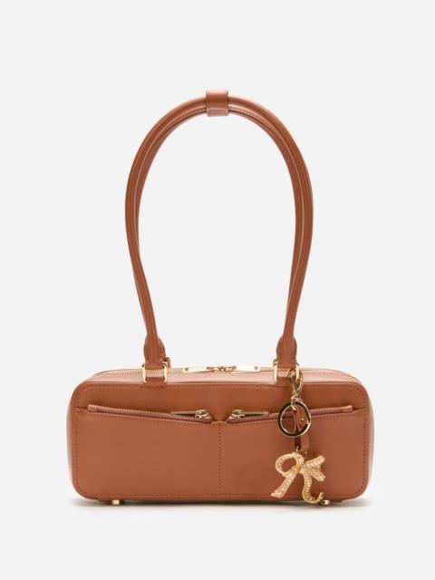 TAN LEATHER BAGUETTE SHOULDER BAG WITH CHARM