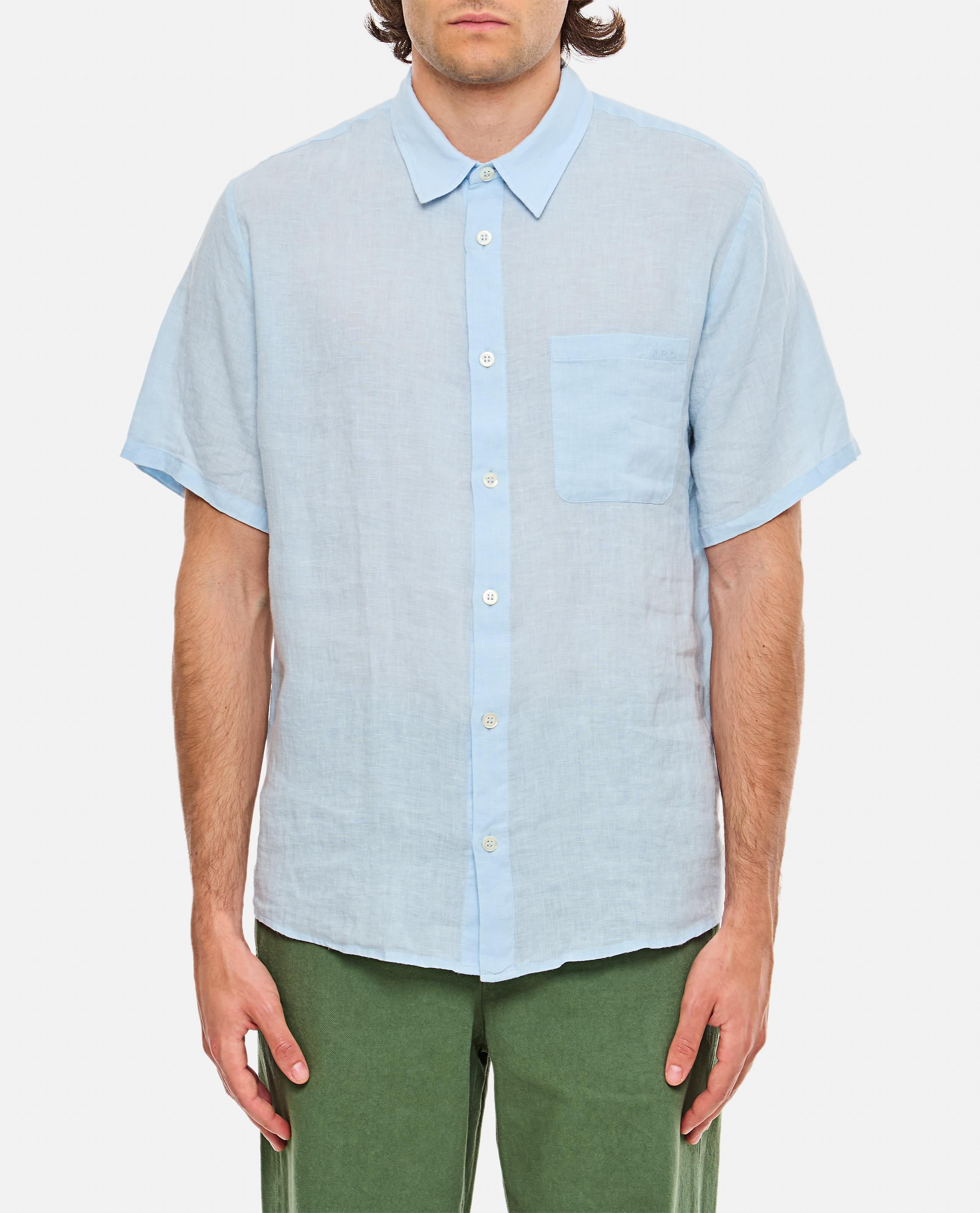 Short-sleeved linen shirt with chest pocket and embroidered logo. Light blue color Details and Care Color: Blue Composition: 100% LI Made in: Marocco Sku: LIAEKH12551IAB