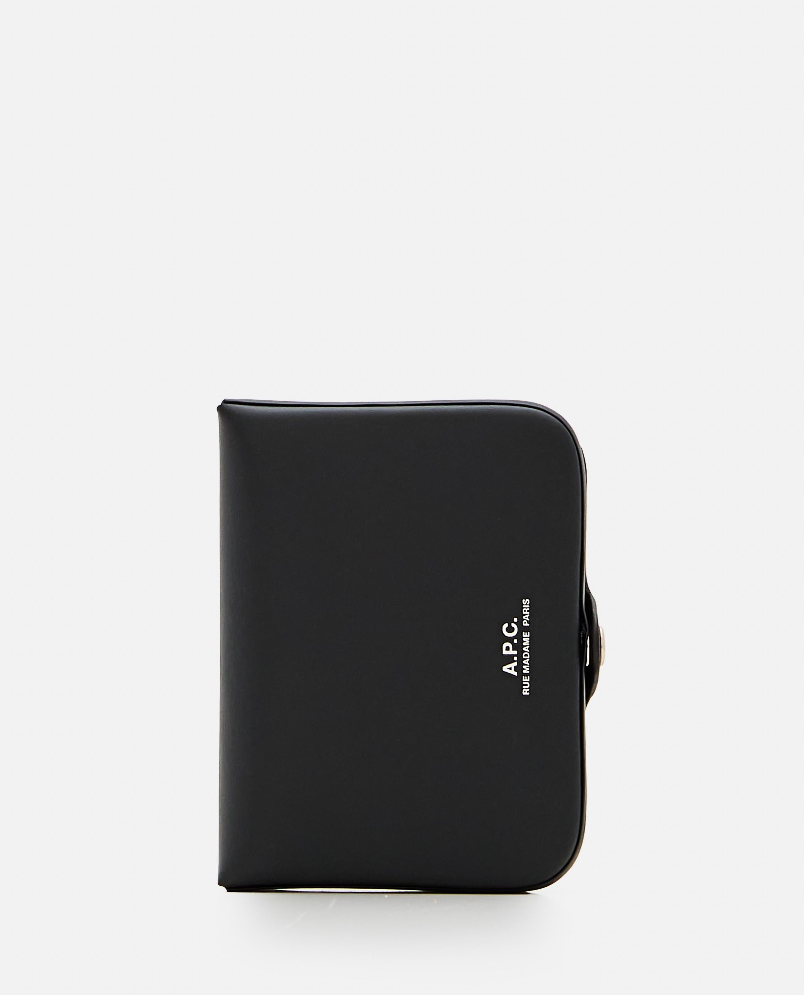 Coin pocket. Compartment with five card slots. Rounded corners. Snap flap closure. Small silver 'A.P.C. Logo Rue Madame Paris' embossing on the front. Black color. Details and Care Color: Nero Composition: 100% COW LEATHER Made in: Spagna Sku: PXAWVH63176LZZ