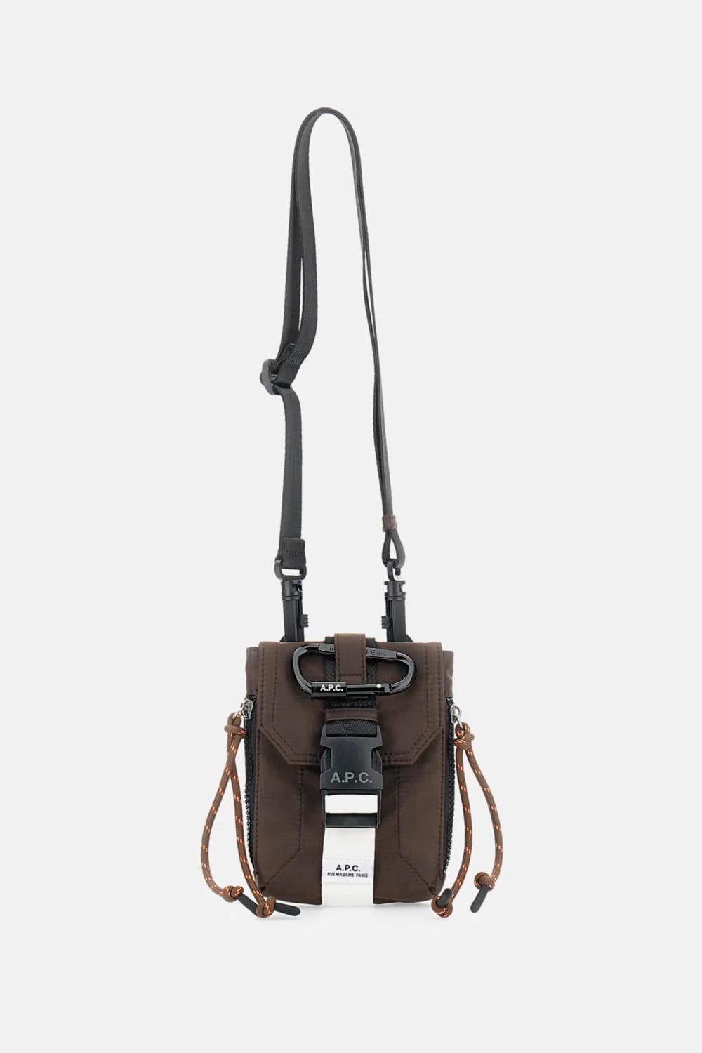 Crafted from durable material, designed for everyday functional use. Flap closure with plastic buckle featuring the A.P.C. logo. Adjustable shoulder strap with "climbing rope" effect details. Black carabiner engraved with the A.P.C. logo in white. Compact design coordinated with the Trek line (bag, bum bag, and backpack). Details and Care Color: Marrone Composition: 100% NY Made in: Cina Sku: PAAGSH61733CAA Size and Fit Dimensioni 18 × 11 × 2 cm.