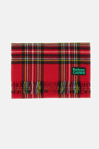 Barbour x GANNI Collaboration Material 100% Lambswool Classic Barbour All-Over Tartan pattern in red. Fringed edge finish. Details and Care Color: Rosso Composition: 100% WO Made in: REGNO UNITO Sku: LSC0455RE51