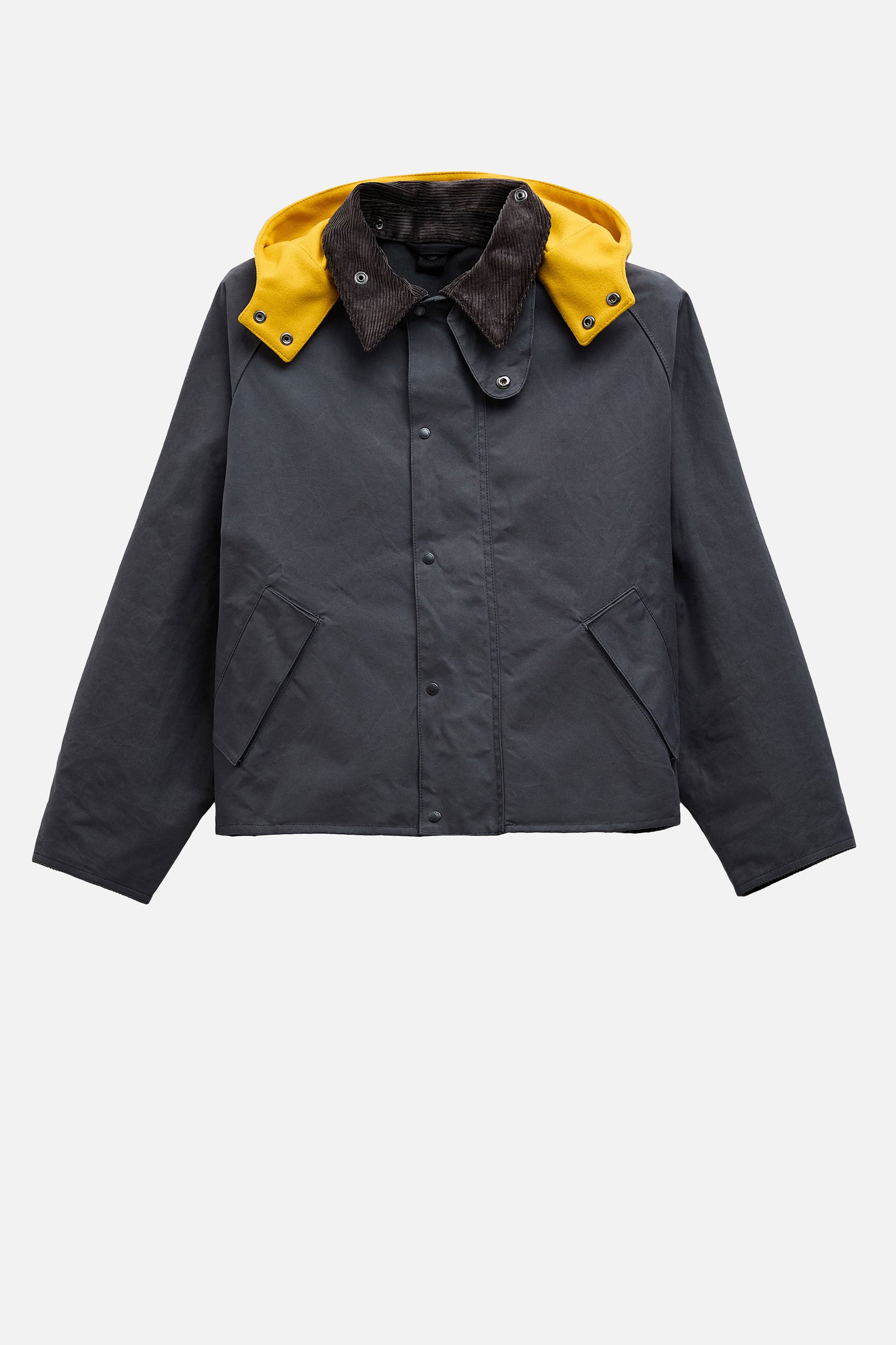 Barbour x Kaptain Sunshine jacket in 100% cotton. Corduroy collar, contrasting hood, jacket closure and sleeves with buttons. Hidden pocket on the front. Blue and yellow colors. Details and Care Color: Blu Composition: 100% CO Made in: Moldavia Sku: MCA1070GY71