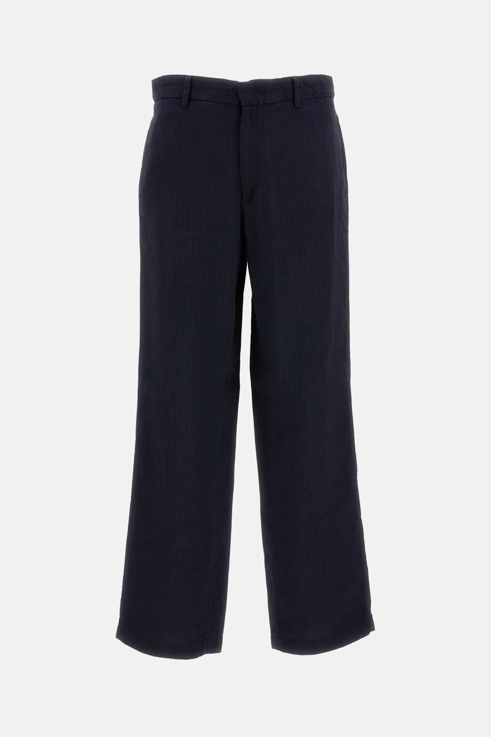 Wide-leg trousers in linen blend Fabric with tone-on-tone striped weave Front closure with zip and hooks Side pockets, flap pockets at the back Belt loops Color: blue Made in Italy Details and Care Color: Blu Composition: 52% VI 48% LI Made in: Italia Sku: PAU54334146170