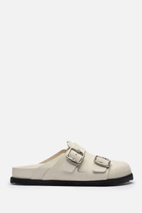 Exclusive hybrid that combines the Arizona double-strap design with the closed toe of the Boston model. Made in soft cream-colored suede with chrome buckles. Cork-latex insole lined in nappa leather that adapts to the arch of the foot. Lightweight and flexible EVA sole. Details with silver 1774 logo and dedicated packaging. Details and Care Color: Beige Composition: 100% SUEDE LEATHER Made in: Spagna Sku: 1031374CREAM