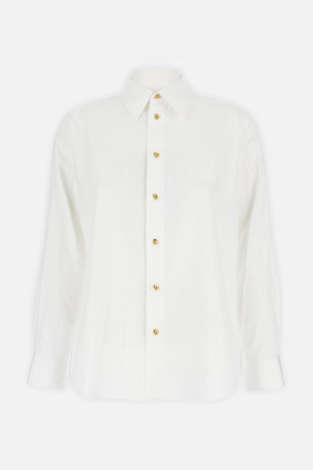 Classic collar Front closure and cuffs with golden metal Knot buttons. Long sleeves Made of 100% cotton Made in Italy Details and Care Color: Bianco Composition: 100% CO Made in: Italia Sku: 838420V2H209000