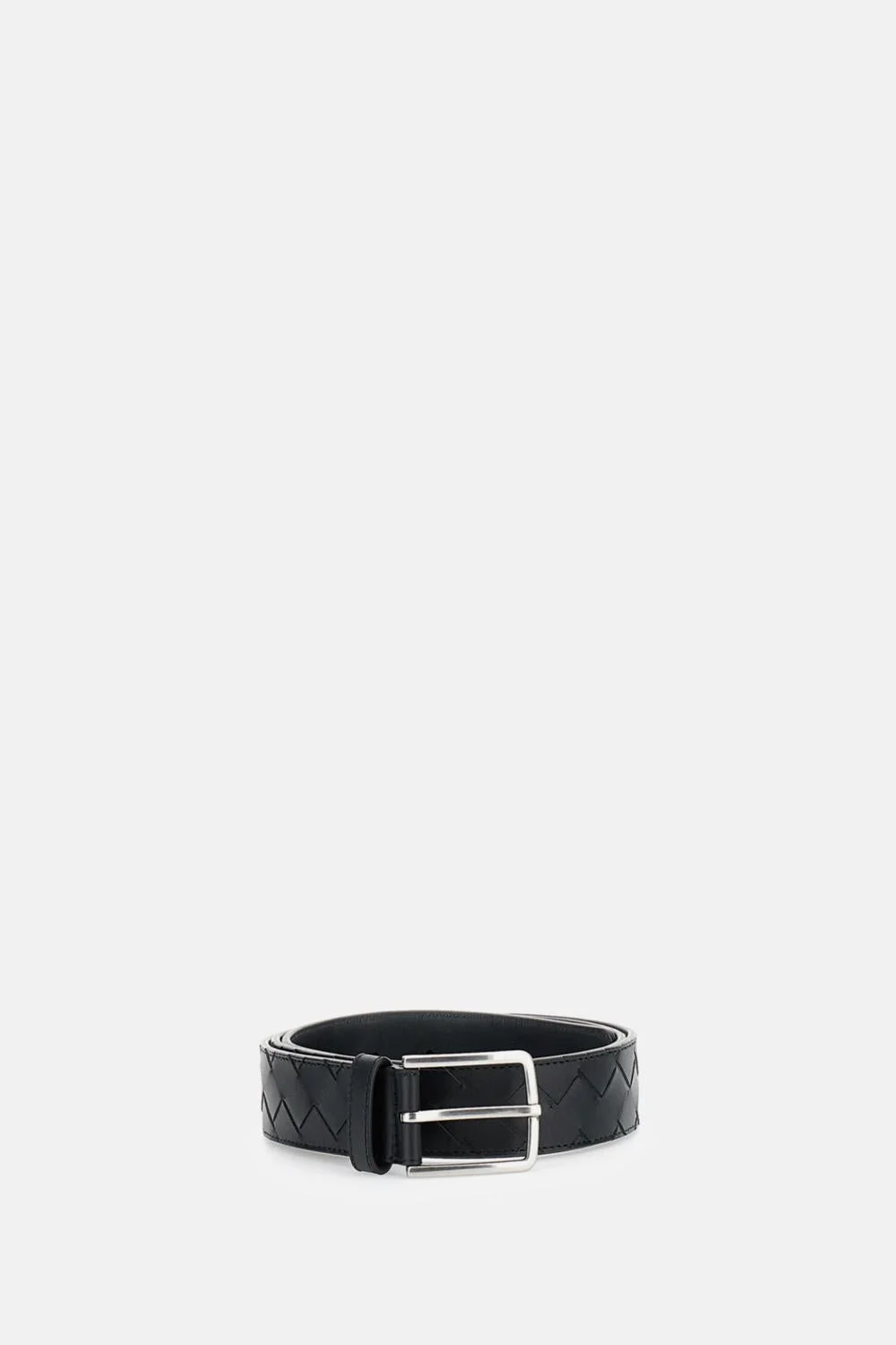 Leather belt with woven pattern Buckle closure Interior: calfskin leather Color: Black Metal accessories: black finish Made in: Italy Details and Care Color: Nero Composition: 100% CALFSKIN LEATHER Made in: Italia Sku: 609182V4KF18803