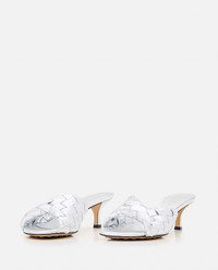 Mule with folded detail in laminated leather with Intrecciato motif. Heel 5 cm Color: silver Care and details Color: Silver Composition: 100% LAMB LEATHER Made in: Italia Code: 796464V55N11156