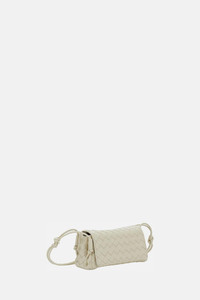 Nappa clutch with Intrecciato pattern Two main compartments, one internal zip pocket Magnetic flap closure Adjustable tubular leather shoulder strap with sliding Knot details Interior: suede Color: White Metal hardware: gold finish Made in: Italy Details and Care Color: Bianco Composition: 100% LAMB LEATHER Made in: Italia Sku: 843893VCPP09197 Size and Fit Dimensione (cm): 21X9X8