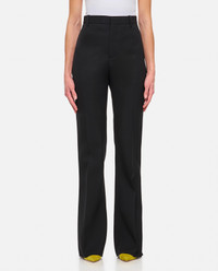 Black wool tailored pants with high waist. Belt loops. Concealed hook-and-eye and zipper closure. Side pockets. Back welt pocket. Flared leg and pressed crease. Care and details Color: Black Composition: 70% CO 20%VI 10% PA Made in: Italia Code: 810488V3PH01000