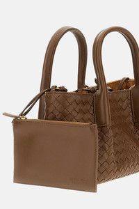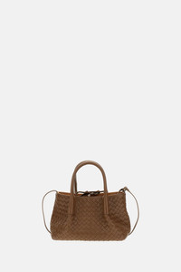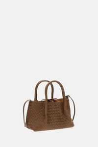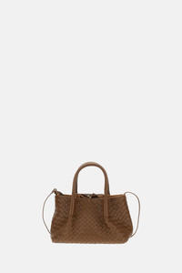 Small calf leather bag, two top handles and removable zip pouch. Suede leather lining, removable and adjustable shoulder strap, closure with drawstring on the open top. Made in Italy, color: brown Details and Care Color: Marrone Composition: 100% CALFSKIN LEATHER Made in: Italia Sku: 819004V5AG12814 Size and Fit • Altezza: 15 cm • Larghezza: 24 cm • Profondita: 12 cm • Luce manico: 11 cm • Luce tracolla: 47 cm