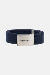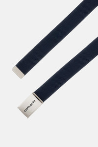 Belt with adjustable and interchangeable metal clip chrome buckle. Embossing with writing on the buckle. Care and details Color: Blue Composition: 100% PL Made in: Cina Code: I01917629LXX