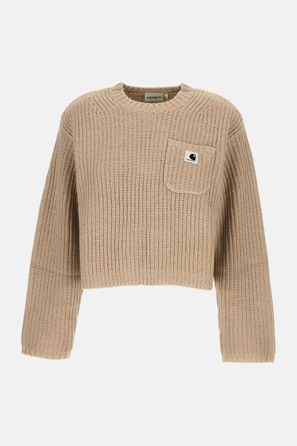 Felpa girocollo Taschino applicato con etichetta logo Taglio morbido Vestibilita over Rifiniture a costine Colore beige Details and Care Color: Beige Composition: 75% AC 15% WO 10% NY Made in: Cambogia Sku: I0353822LPXX