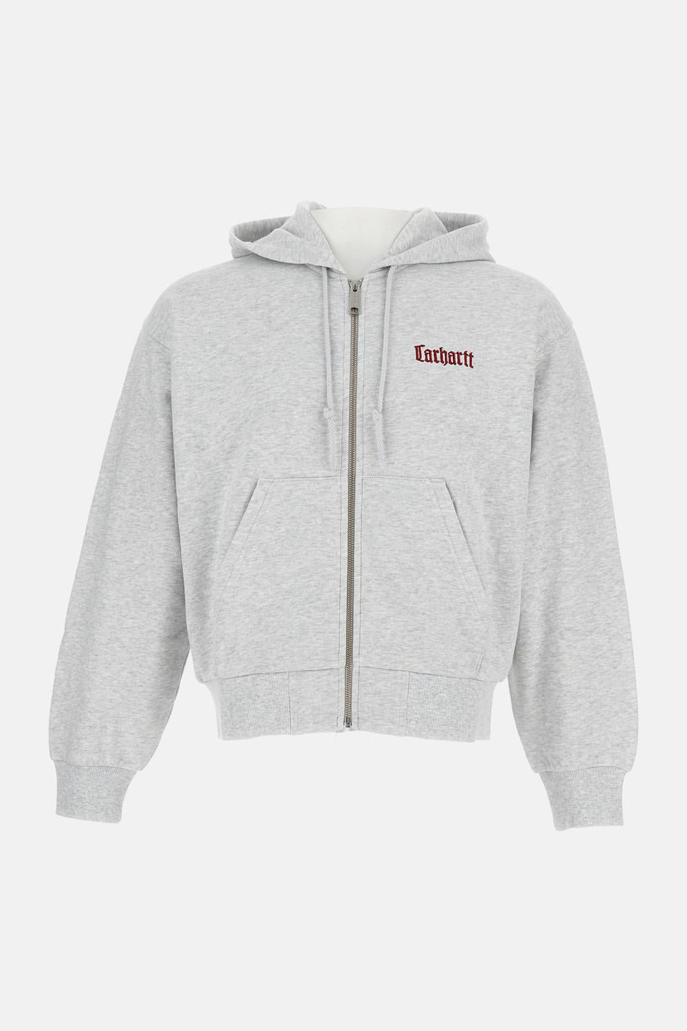 Cotton blend sweatshirt with front zip closure, embroidered logo on the chest, front pockets; ribbed pattern on hem and cuffs, grey color. Details and Care Color: Grigio Composition: 80% CO 20% PL Made in: Cambogia Sku: I03551448206