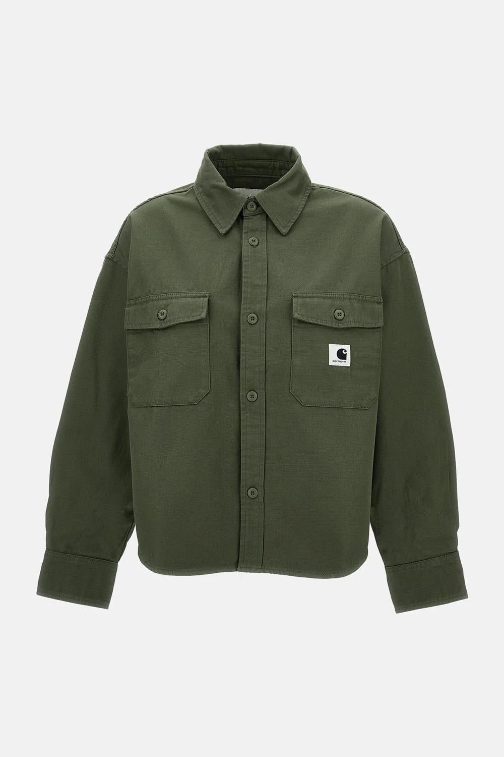 Kelly Shirt Jacket Women Fabric: Medium-weight cotton twill Unlined. Closure: Front buttons. Pockets: Two on the chest. Durability: Reinforced bartack stitching. Detail: Square label with logo. Color: green. Details and Care Color: Green Composition: 100% CO Made in: Tunisia Sku: I0363201102