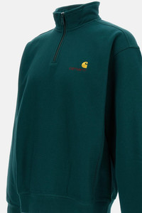 Half-zip sweatshirt with Carhartt "American Script" logo, made from soft cotton/polyester blend fabric for maximum comfort and durability. Casual design with high collar and zipper, perfect for layering or everyday wear. Urban and sporty style, ideal for every season. Details and Care Color: Verde Composition: 80% CO 20% PL Made in: Cambogia Sku: I02701405AXX