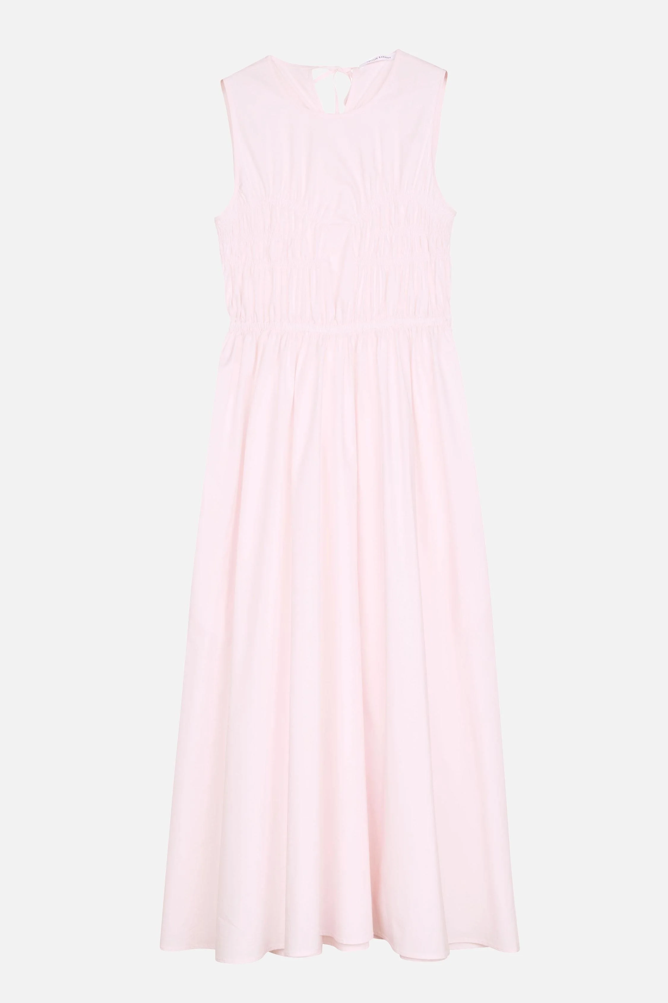 Midi length sleeveless with a flared skirt gathered waist draping lace-up closure at the back of the neck powder pink color Details and Care Color: Rosa Composition: 100% CO Made in: Lettonia Sku: 25RTW10002BLUSHPINK