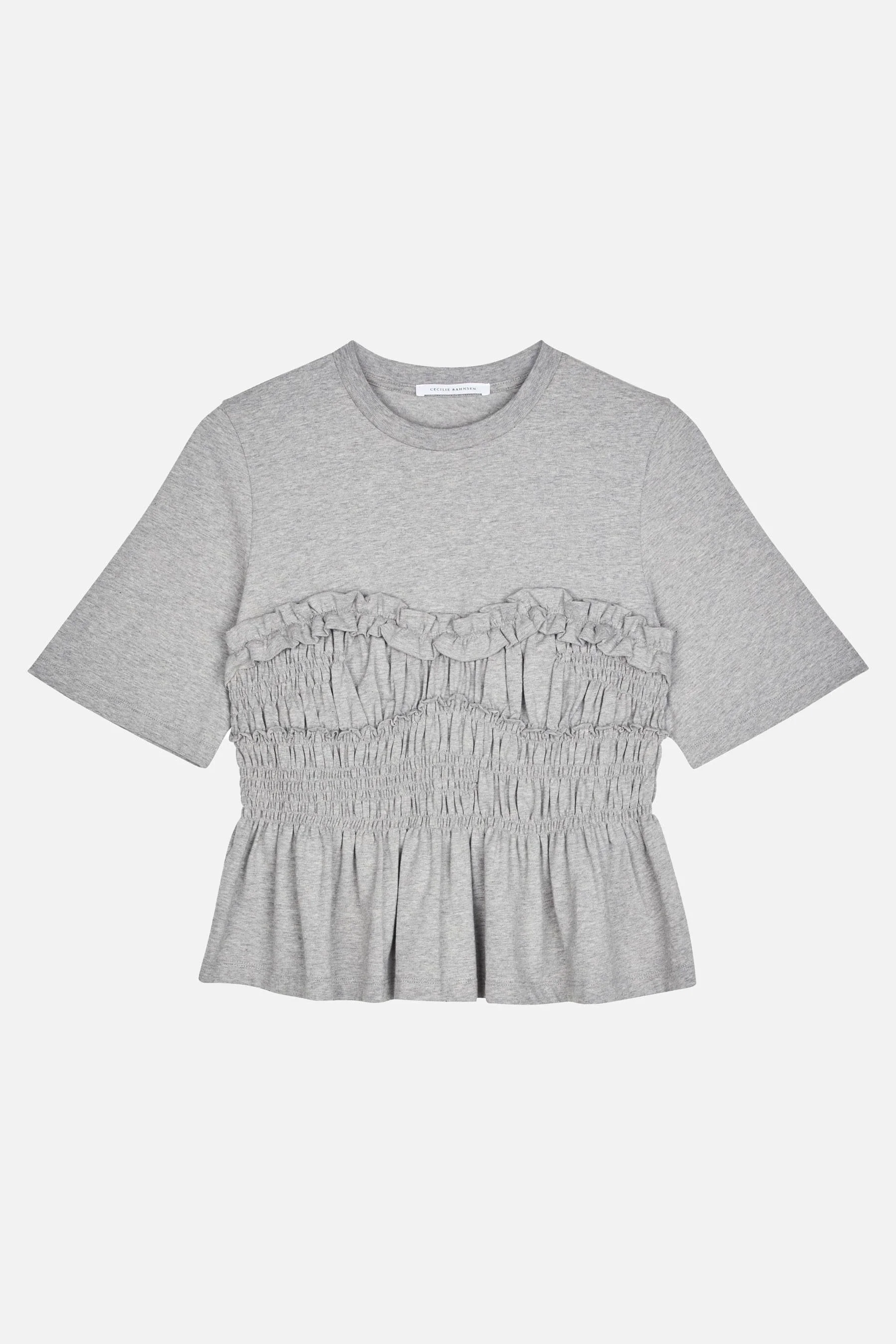 Light grey jersey T-shirt with an elegant design. Ruched detailing Relaxed fit Details and Care Color: Grigio Composition: 90% CO 10% EA Made in: Portogallo Sku: 25RTW19002GREYMELANGE