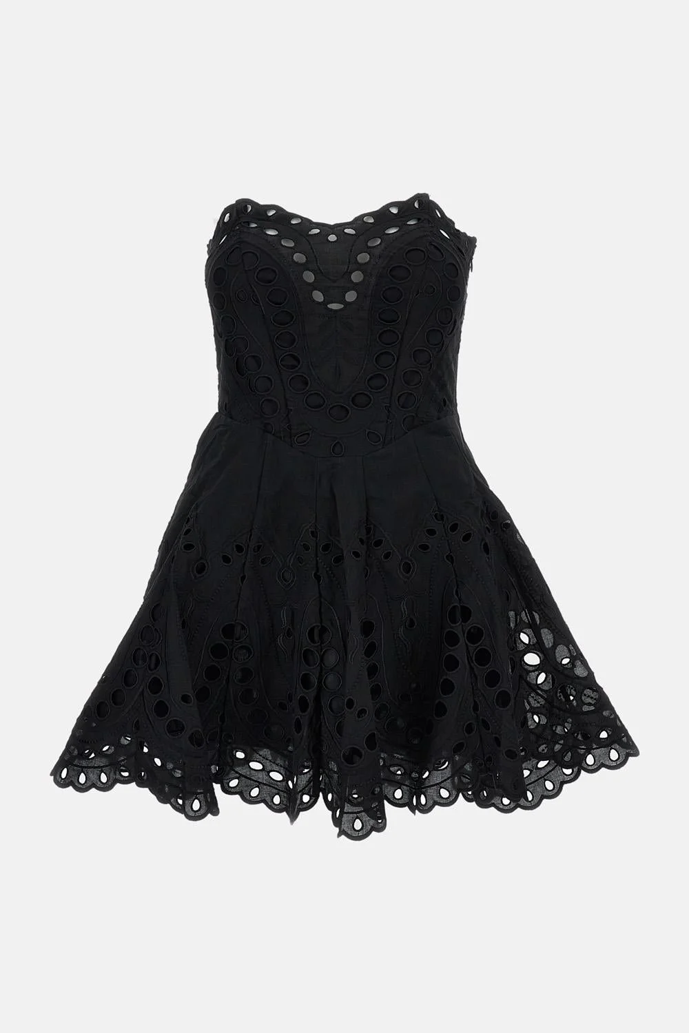Short dress in cotton blend with eyelet lace Regular fit Fitted bodice and full skirt Construction with elastic insert at the back for ease of wear Fully lined Side zipper Color: black Details and Care Color: Nero Composition: 60% CO 40% PL Made in: Portugal Sku: 263601BLACK