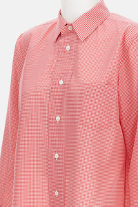 Long-sleeve shirt by Comme des Garcons, crafted in 100% polyester fabric, featuring a contemporary and refined checkered pattern. Adjustable cuffs and front buttons Details and Care Color: Rosso Composition: 100% PL Made in: Giappone Sku: GPB0180511