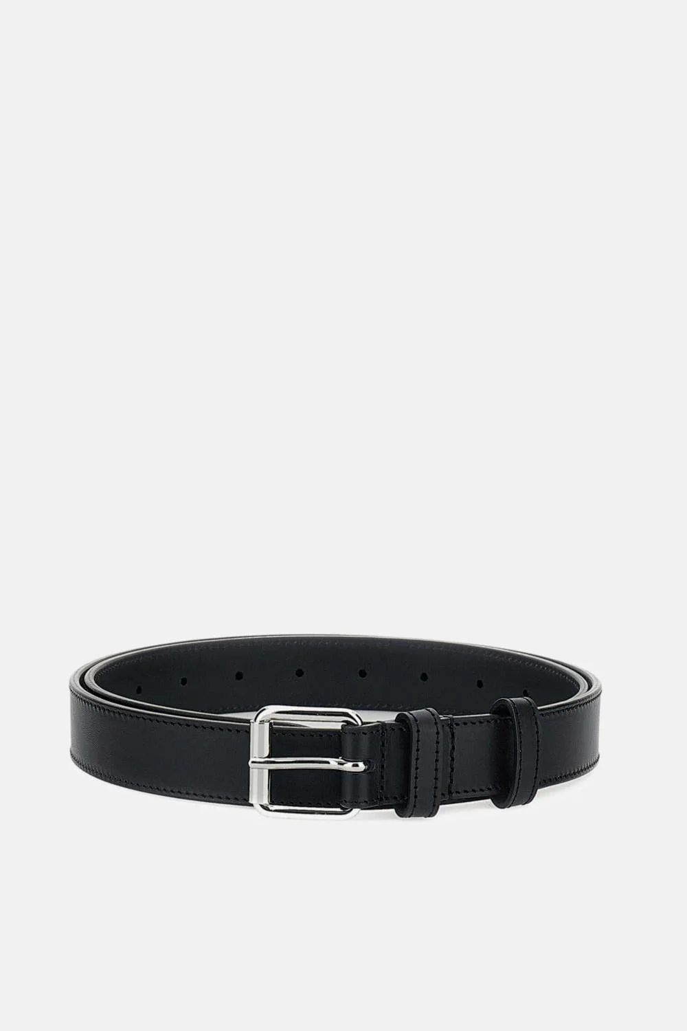 Belt with black buckle in calf leather. Model with silver-colored buckle, loops, perforated details, and square tip. Details and Care Color: Nero Composition: 100% COWHIDE LEATHER Made in: Spagna Sku: SA0912CFBLACK