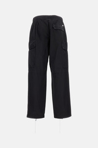 Button and zip closure Darts Belt loops Side pockets Thigh pocket with snap button Back pocket with button and lens Welt back pockets with snap button and label Adjustable cuffs with drawstring Garment-dyed Boxy fit Color: black Details and Care Color: Nero Composition: 100% CO Made in: Tunisia Sku: 20CMPA128A110325G999