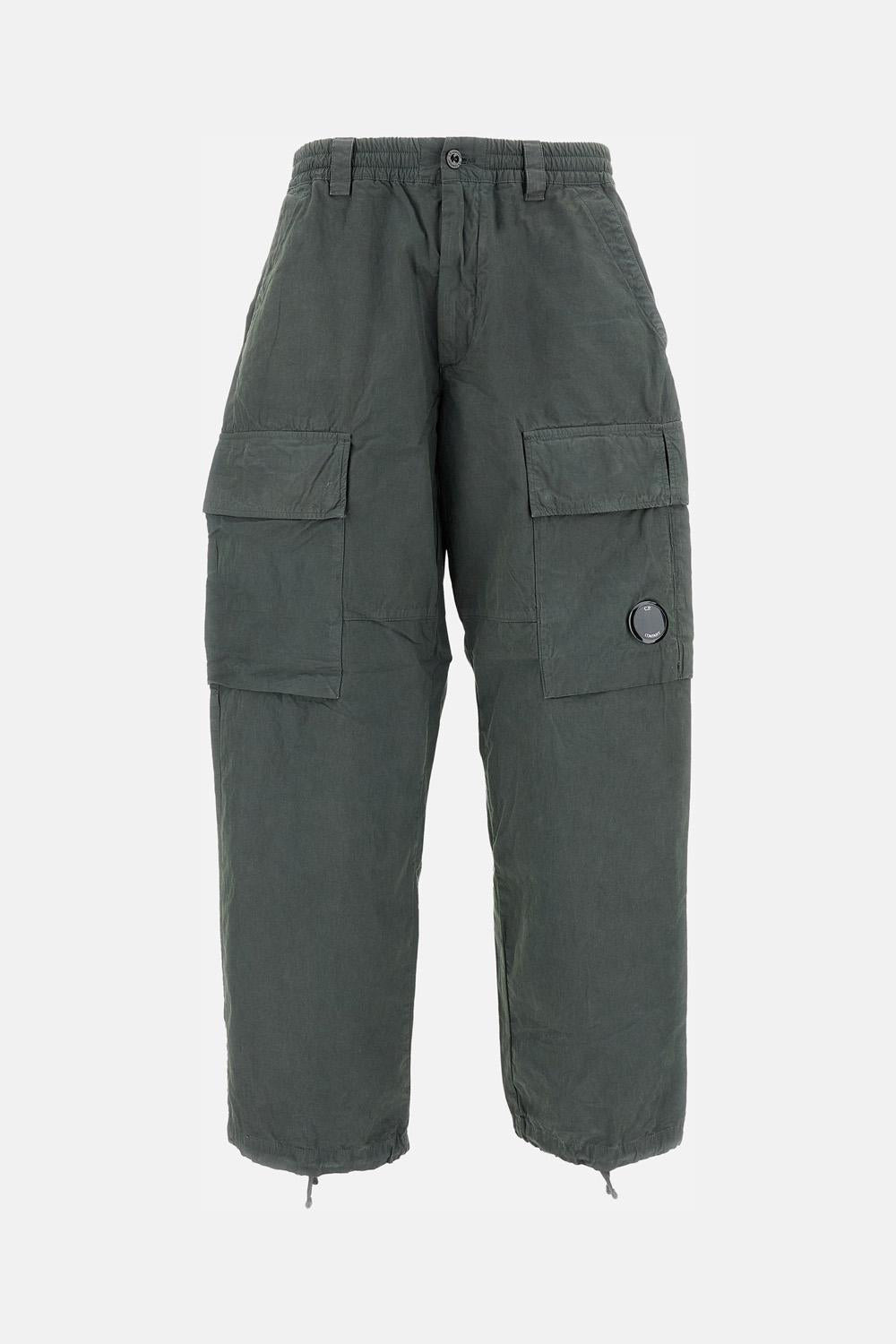 Loose Fit silhouette. Two cargo pockets, one with Lens C.P. Company detail. Belt loops. Zip and button closure. Made of compact rep nylon, durable and water-repellent. Matte surface. Green color. Details and Care Color: Blu Composition: 100% CO Made in: Tunisia Sku: 19CMPA066A110324G978