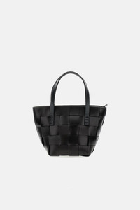 Mini Japan Model Bag with wide handmade weaving. Top closure with zipper. Dyed using natural methods in matte black. Interior lined with black fabric. Equipped with a removable leather shoulder strap. Details and Care Color: Black Composition: 100% COWHIDE LEATHER Made in: India Sku: 8105BLACK Size and Fit Profondita 15 cm Manico 14 cm Altezza 18 cm Larghezza 24 cm