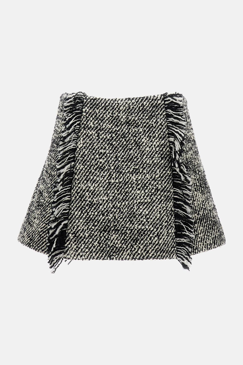 Quilted wool miniskirt with fringe detail front and back, in black and white colors. Details and Care Color: Nero Composition: 91% WV 9% PA Made in: Italia Sku: FW25SK01TT0051B003