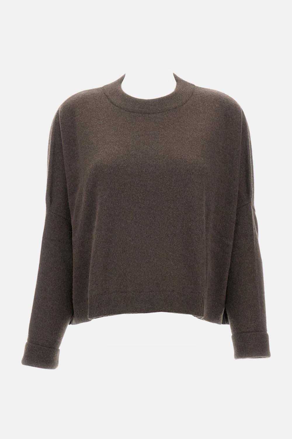 Sweater with round neckline and dropped, shaped sleeves in medium-weight cashmere. Ribbed neckline, cuffs, and hem. Loose and cropped fit. made in Italy brown color. Details and Care Color: Marrone Composition: 100% WS Made in: Italia Sku: T7691NYA