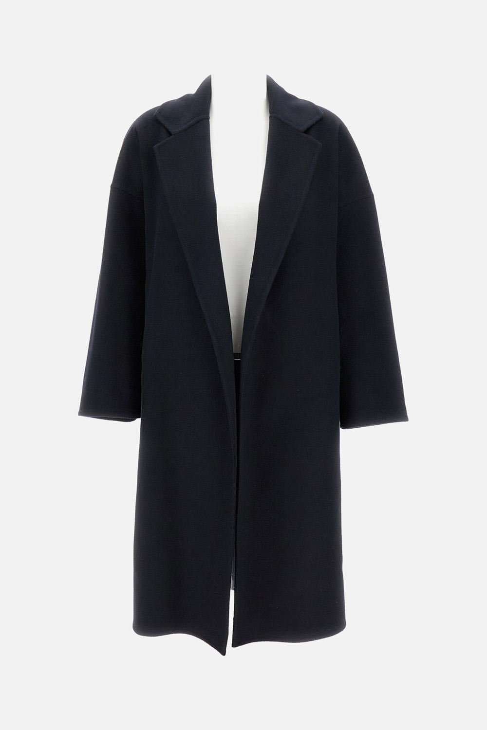 Long wool coat made in Italy. Open front closure with belt detail. Side pockets, blue color Details and Care Color: Blu Composition: 100% WS Made in: Italia Sku: T9037DMI