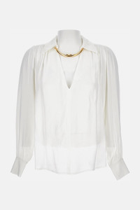 Viscose shirt made in Italy with V-neck and collar. Jewel neckline detail. Loose fit, white color Details and Care Color: White Composition: 100% VI Made in: Italia Sku: CA12356E2360