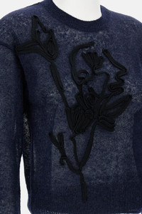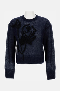 Crewneck sweater with floral embroidery on the front. Blue color, regular fit Care and details Color: Blue Composition: 41% NY 21% WO 38% WP Made in: Cina Code: PF25KT1630034001NAVY