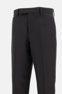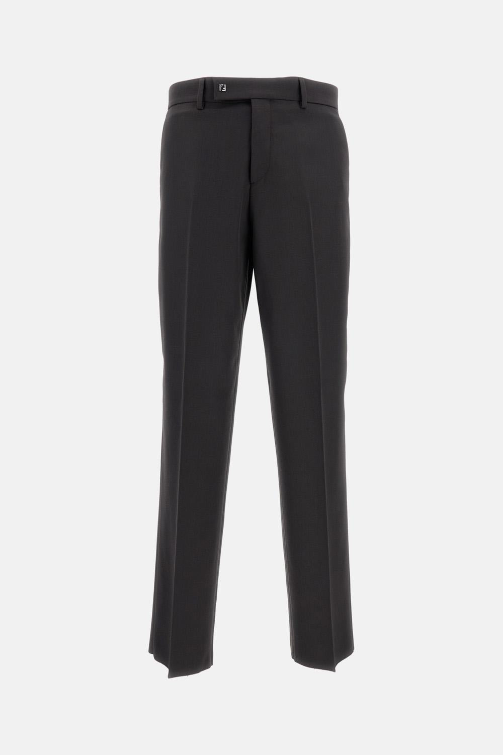 Cigarette trousers in brown crepe wool with pressed crease, side pockets, and waistband loops. Closure with covered zip and hook. Micro FF logo detail in palladium metal with button effect. Made in Italy. Details and Care Color: Marrone Composition: 55% PL 55% WV Made in: Italia Sku: FB1089ASCBF0TY8