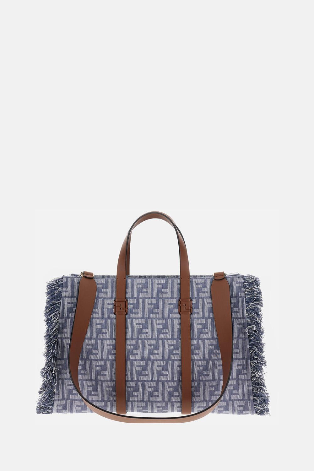 Tote bag in fabric with two handles and non-removable shoulder strap. 'FF' pattern and side fringes. Made in Italy, blue color Details and Care Color: Blue Composition: 56% PL 40% CO 4% EA Made in: Italia Sku: 8BH435AUT4F1SXQ