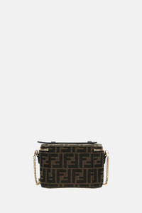 Made in tobacco brown FF jacquard fabric. Equipped with an internal compartment lined in fabric, a card pocket, and metal accessories with a golden finish. Can be carried by hand thanks to the handle or cross-body thanks to the removable chain and leather shoulder strap. Made in Italy Details and Care Color: Marrone Composition: 29% PL 28% PU 28% PA 15% CO Made in: Italia Sku: 8BS108AFPMF1GL7 Size and Fit Altezza : 11 cm Profondita : 8 cm Larghezza : 16 cm Peso : 0.32 kg Lunghezza tracolla (max) : 115.5 cm Luce tracolla : 54 cm
