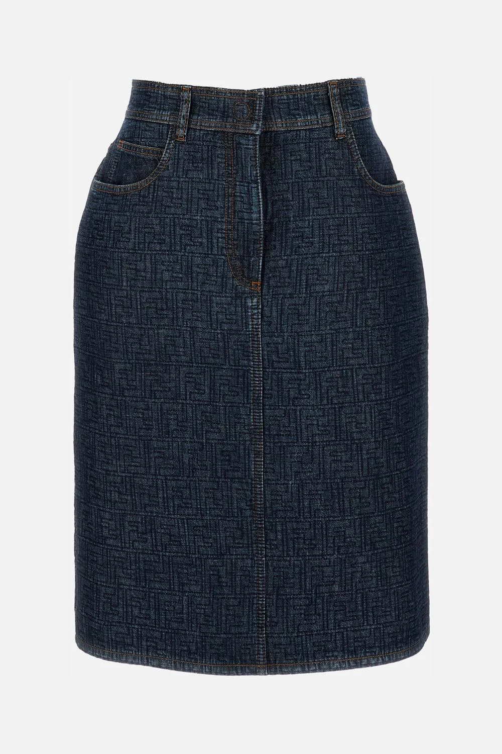 Flared skirt Front closure and 5 pockets Leather label with 'FF' embroidery Skirt with embroidered 'FF' pattern Made in Italy Details and Care Color: Blu Composition: 100% CO Made in: Italia Sku: FLQ604AW82F1UKI