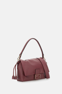 Iconic Mamma Baguette medium size bag Crafted from soft burgundy nappa leather, adorned with the FF closure with a tone-on-tone leather insert. Spacious internal compartment lined in suede with drawstring closure, featuring tone-on-tone leather laces and personalized details. Equipped with a front flap and magnetic button closure. Metal accessories with a golden finish. Can be carried on the shoulder or cross-body thanks to the handle and the removable strap. Made in Italy Details and Care Color: Rosso Composition: 100% LEATHER Made in: Italia Sku: 8BR833AQ0DF0YPU Size and Fit Altezza : 18 cm Profondita : 8.5 cm Larghezza : 26.5 cm Peso : 0.5 kg Lunghezza tracolla (min) : 101 cm Lunghezza tracolla (max) : 101 cm Luce tracolla : 45 cm