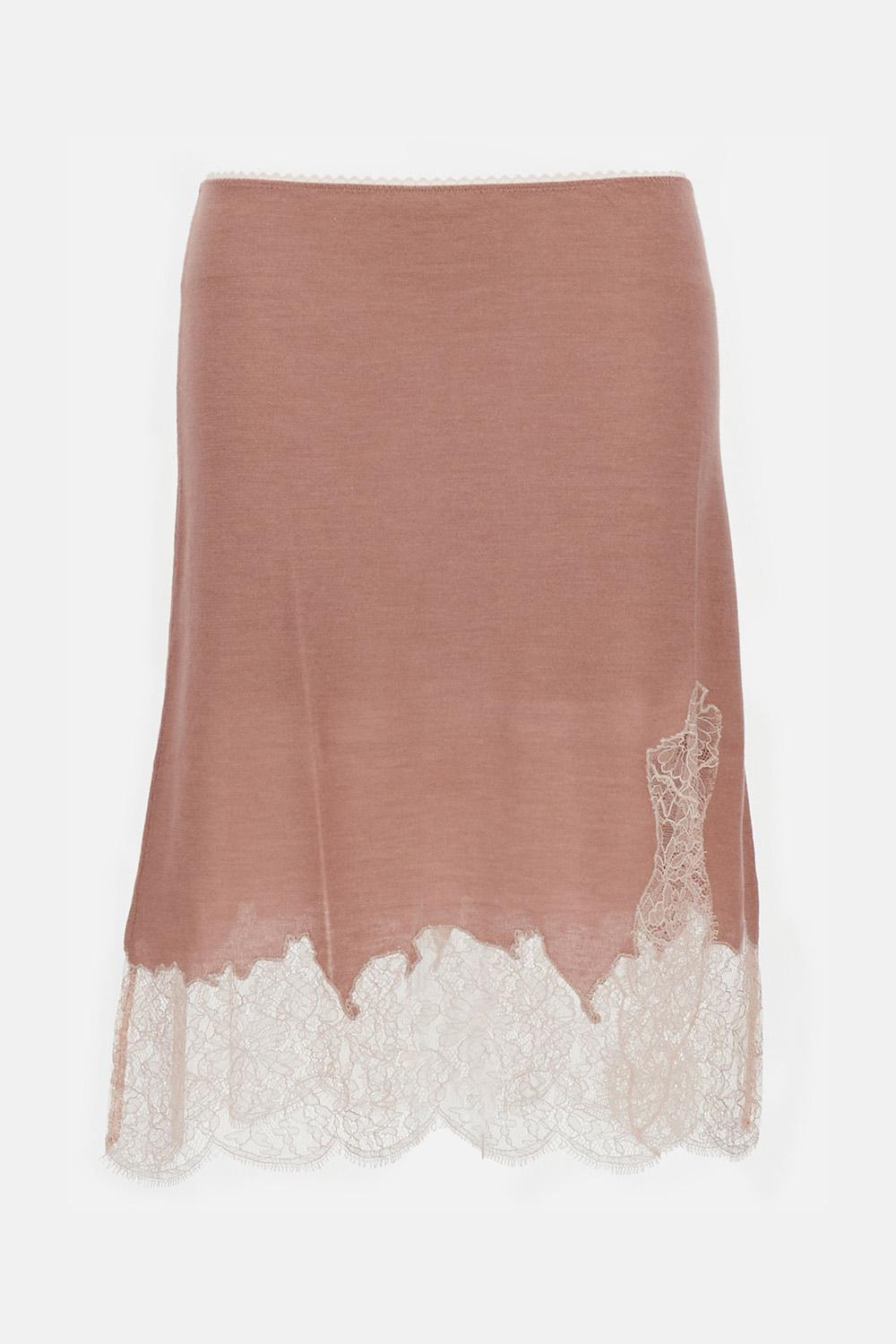 Short skirt with elasticated waist, made of lightweight pink knit. Finished with tone-on-tone lace and tulle inserts, lingerie effect. Made in Italy. Details and Care Color: Rosa Composition: 51% VI 49% PA Made in: Italia Sku: FZQ999AUZSF1T6N