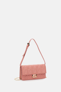 Flap with FF closure. Internal compartment with 6 card slots. Double shoulder strap, one adjustable leather and one thin removable chain to wear the bag under the arm, cross-body or by hand as a clutch. Made of soft nappa with iconic FF embossed motif with a three-dimensional effect. Metal accessories with golden finish. Made in Italy Details and Care Color: Rosa Composition: 100% LAMB LEATHER Made in: Italia Sku: 8M0498AAJDF13VM Size and Fit Altezza : 11.5 cm Profondita : 5 cm Larghezza : 21 cm Lunghezza tracolla (min) : 82 cm Lunghezza tracolla (max) : 119 cm Luce tracolla : 54 cm