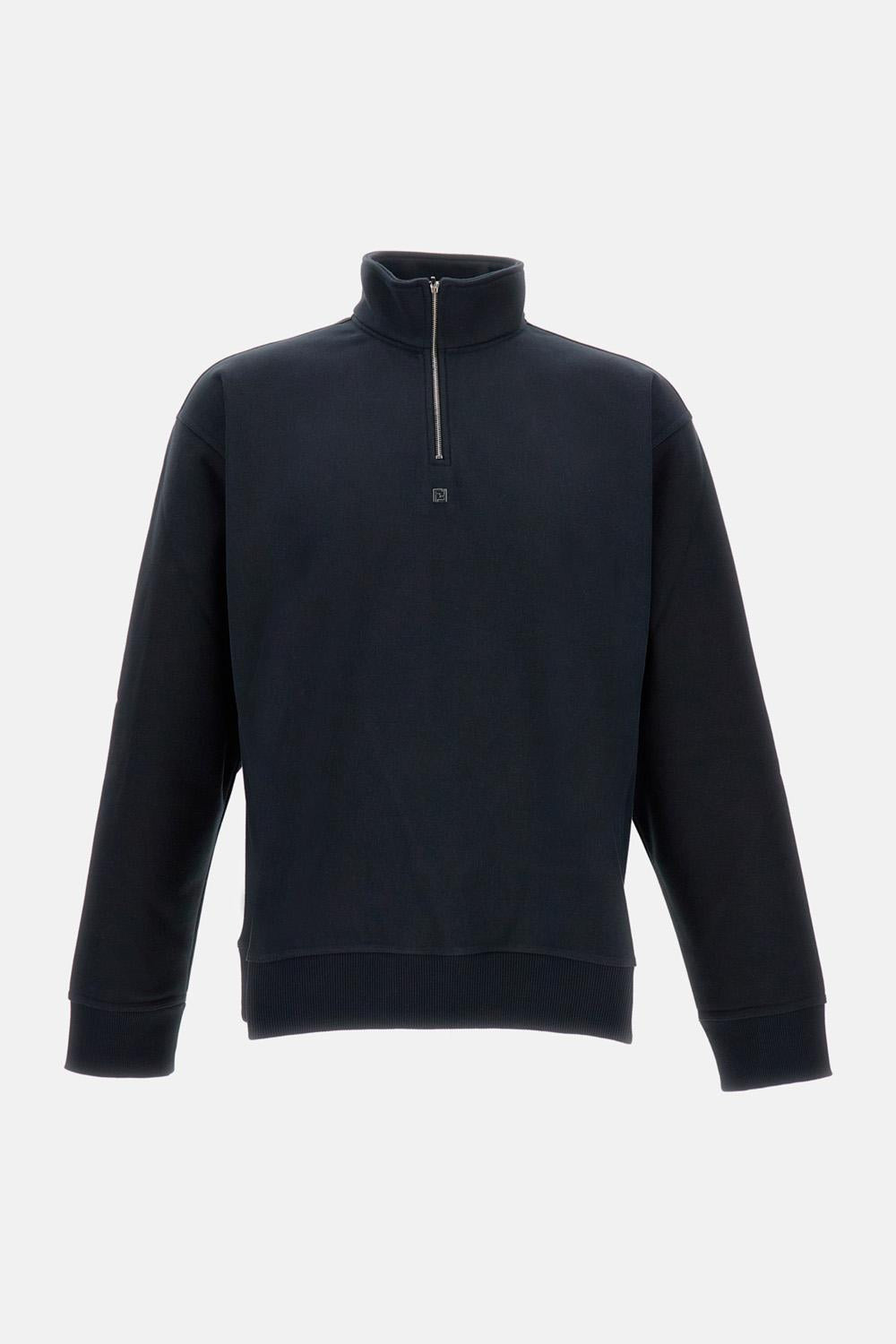 Sweatshirt made of soft cotton, with a mid-length zip closure and metallic logo detail on the chest. Made in Italy Details and Care Color: Nero Composition: 98% CO 2% EA Made in: Italia Sku: FAF754AVIOF0GME