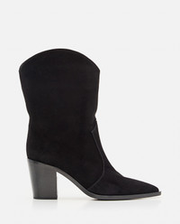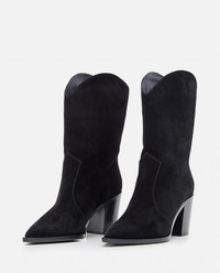 Slip-on. Suede upper. Curved top hem. Ankle length. Angled heel. Pointed toe. Color: black. Care and details Color: Black Composition: 100% SUEDE LEATHER Made in: Italia Code: G7354670CUOCASBLACK